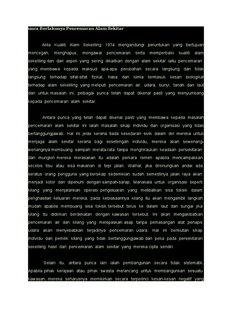 Punca Berlakunya Pencemaran Alam Sekitar