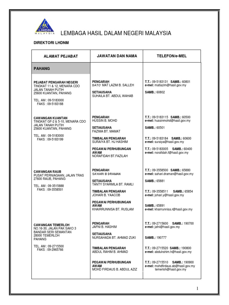 Lembaga Hasil Dalam Negeri Malaysia Direktori Lhdnm