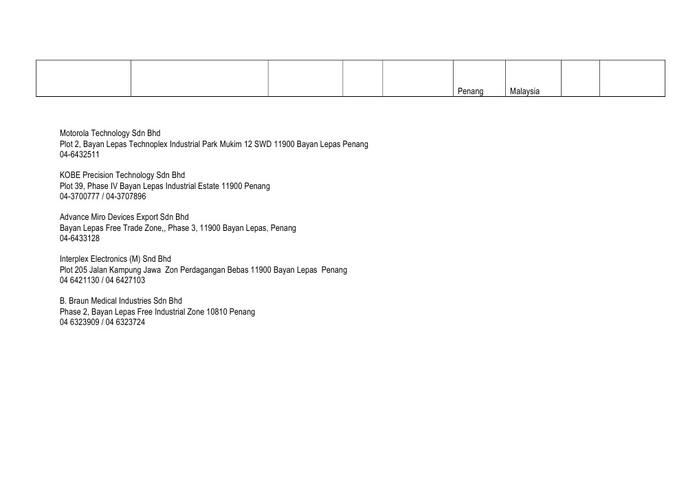 Bayan Lepas Free Industrial Zone Company List
