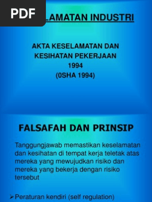 Keselamatan Industri Akta Keselamatan Dan Kesihatan Pekerjaan 1994 0sha 1994