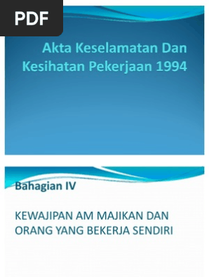 Mphonline Akta Keselamatan Dan Kesihatan Pekerjaan 1994 Akta 514 Peraturan Peraturan Perintah Perintah Hingga 15hb September 2014