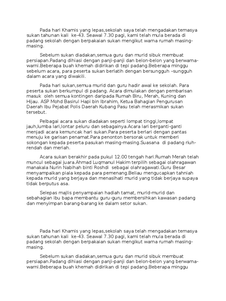 Karangan Hari Sukan Sekolah Dalam Bahasa Arab Red Pastel B