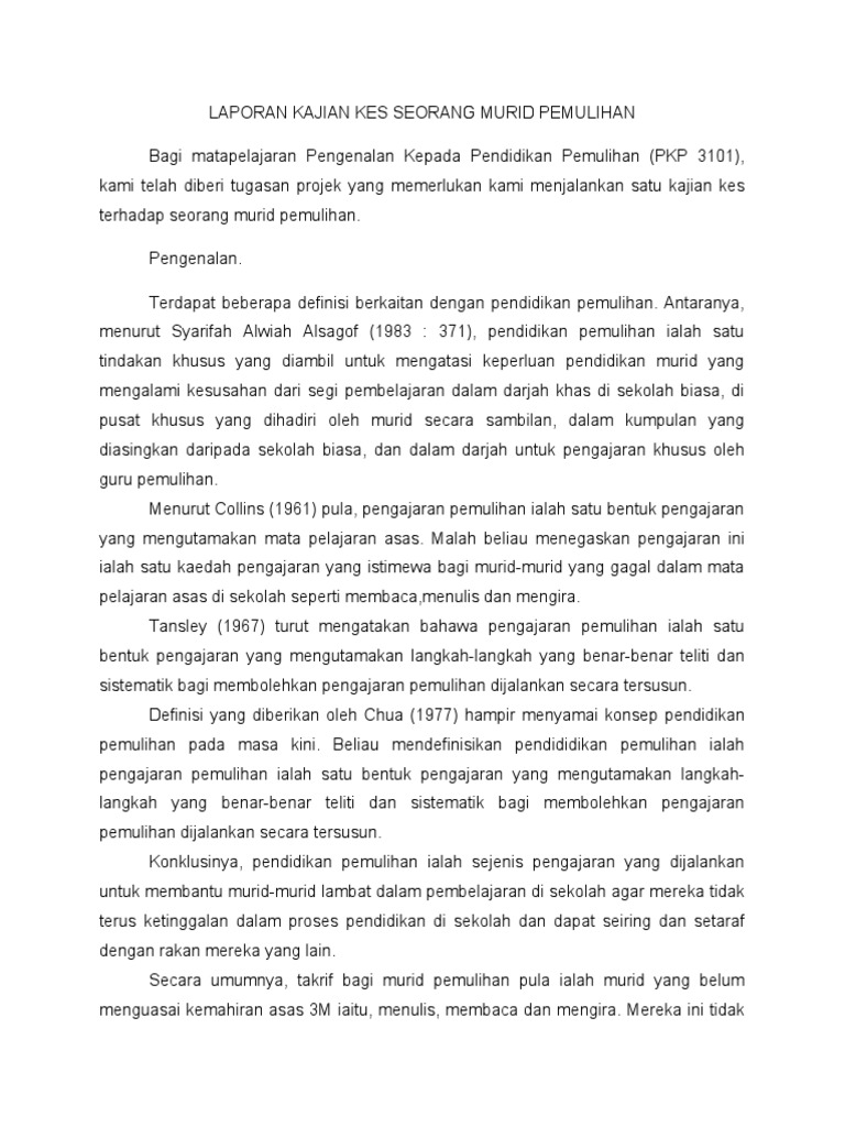 Laporan Kajian Kes Seorang Murid Pemulihan Auto Saved