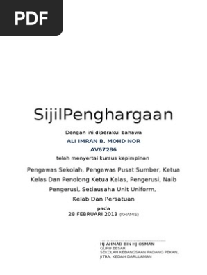 Contoh Sijil Penghargaan Sma Al Hasanah 1