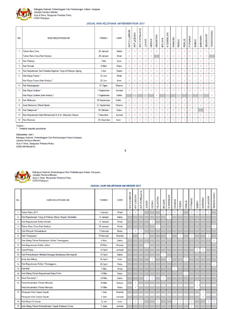 Kalendar Cuti Umum Am Persekutuan Negeri 2017 Pdf