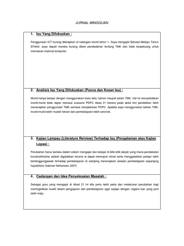 1 Isu Yang Difokuskan Jurnal Mingguan