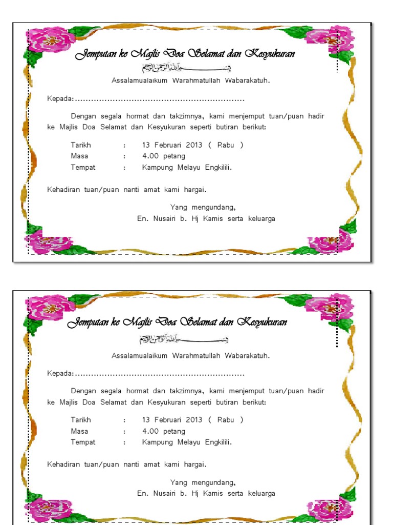 Contoh Surat Jemputan Majlis Bacaan Yasin Backup Gambar