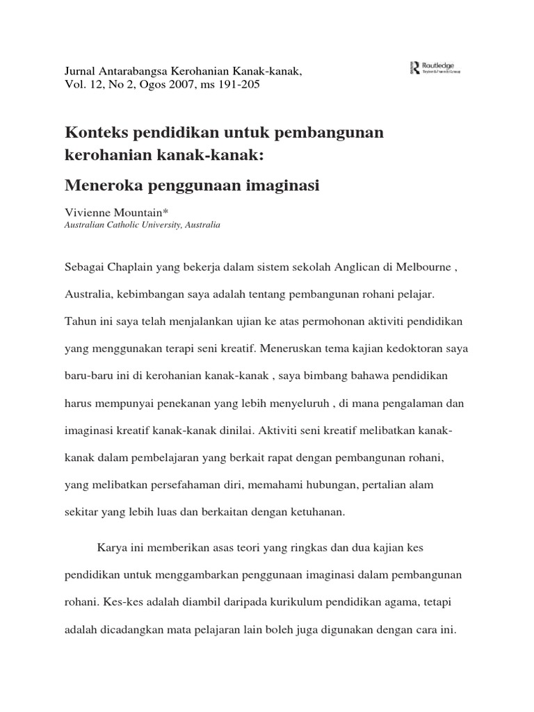 Konteks Pendidikan Untuk Pembangunan Kerohanian Kanak Kanak Meneroka Penggunaan Imaginasi