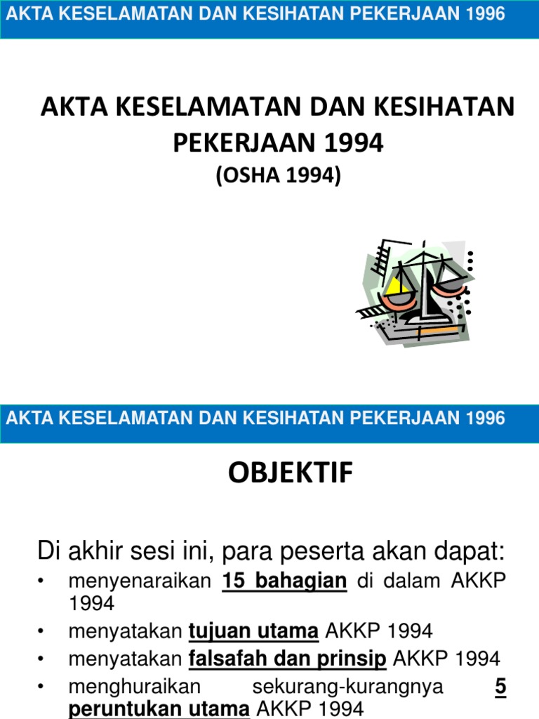 Ppt Akta Keselamatan Kesihatan Pekerjaan 1994 Akta 514 Osha 1994 Powerpoint Presentation Id 3726692