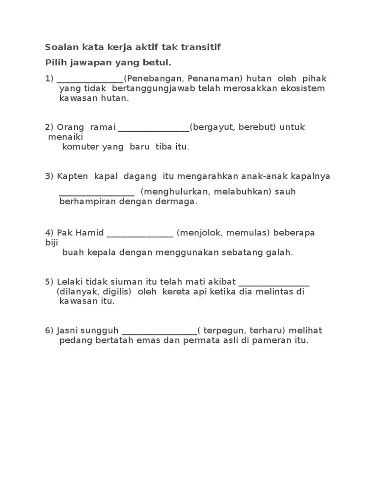 Soalan Kata Kerja Aktif Tak Transitif