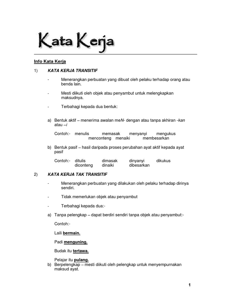 Kata Kerja Transitif Dan Kata Kerja Tak Transitif Pdf Document