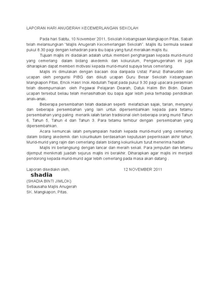 Doc Hari Anugerah Cemerlang Laporan Zubaidah Abu Bakar Academia Edu