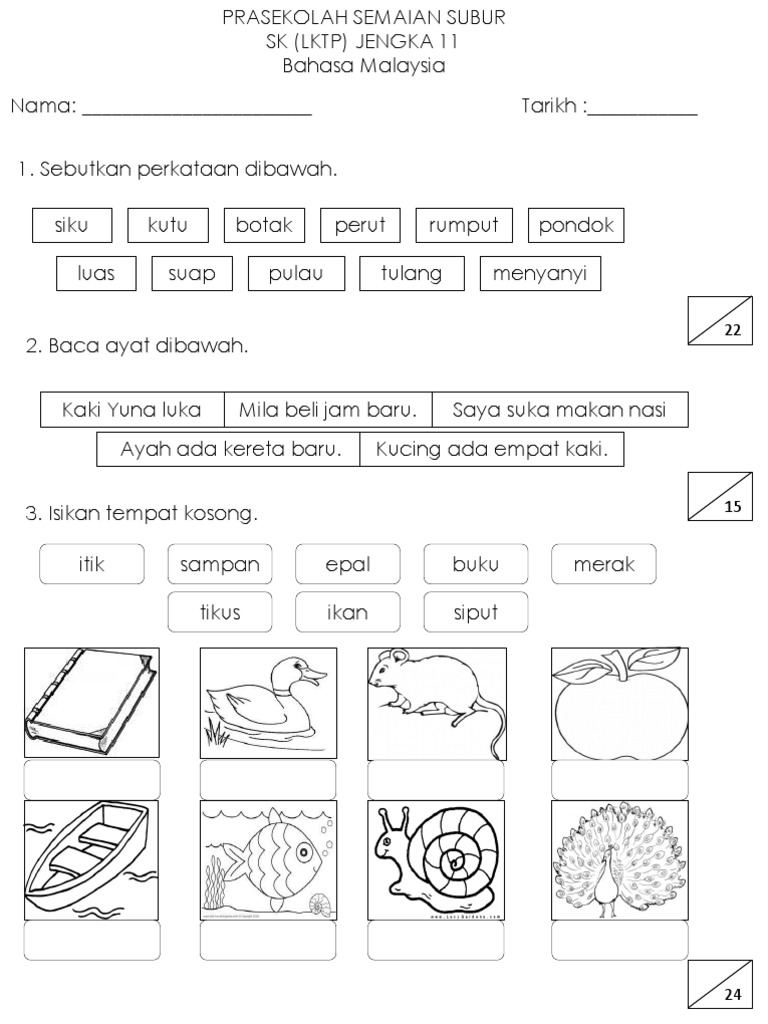Soalan Peperiksaan Bahasa Melayu Tadika 6 Tahun Jalan Permata 4