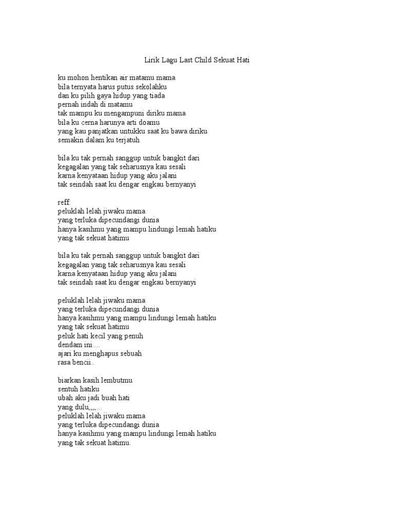 Lirik Lagu Last Child Sekuat Hati