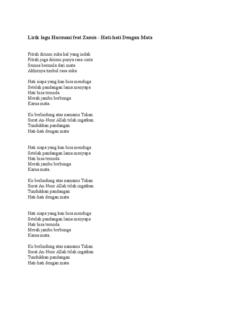 Harmoni Hati Hati Dengan Mata Lyrics Musixmatch