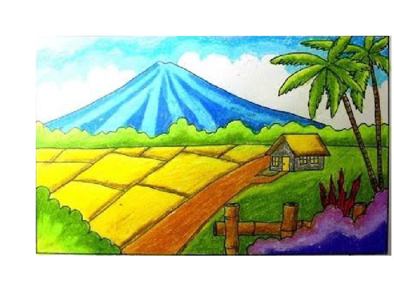 Lukisan Pemandangan Sawah Padi Sekolah Rendah Cikimm Com
