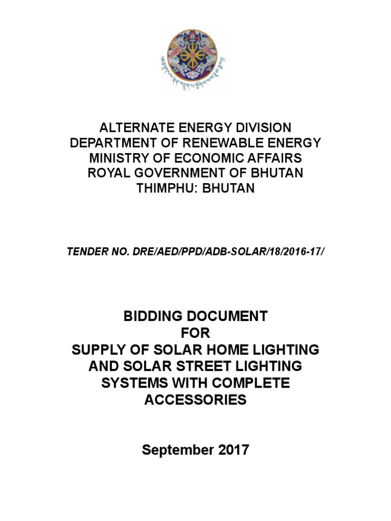 Alternate Energy Division Department Of Renewable Energy Ministry Of Economic Affairs Royal Government Of Bhutan Thimphu Bhutan