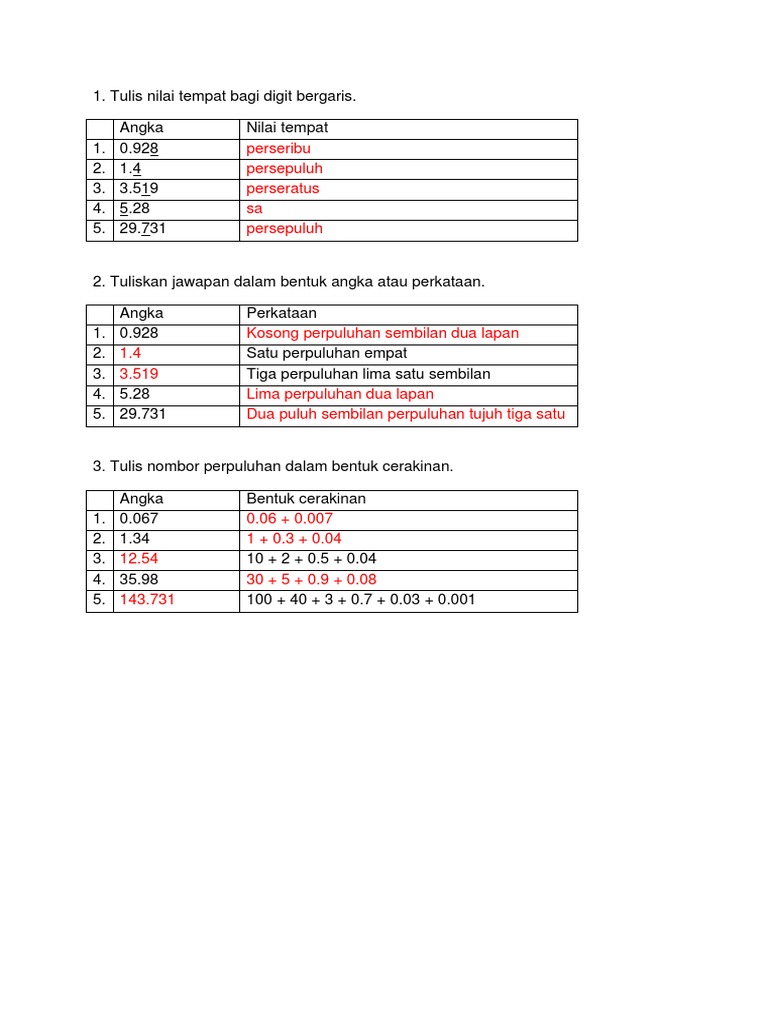 Nilai Tempat Dan Nilai Digit Perpuluhan