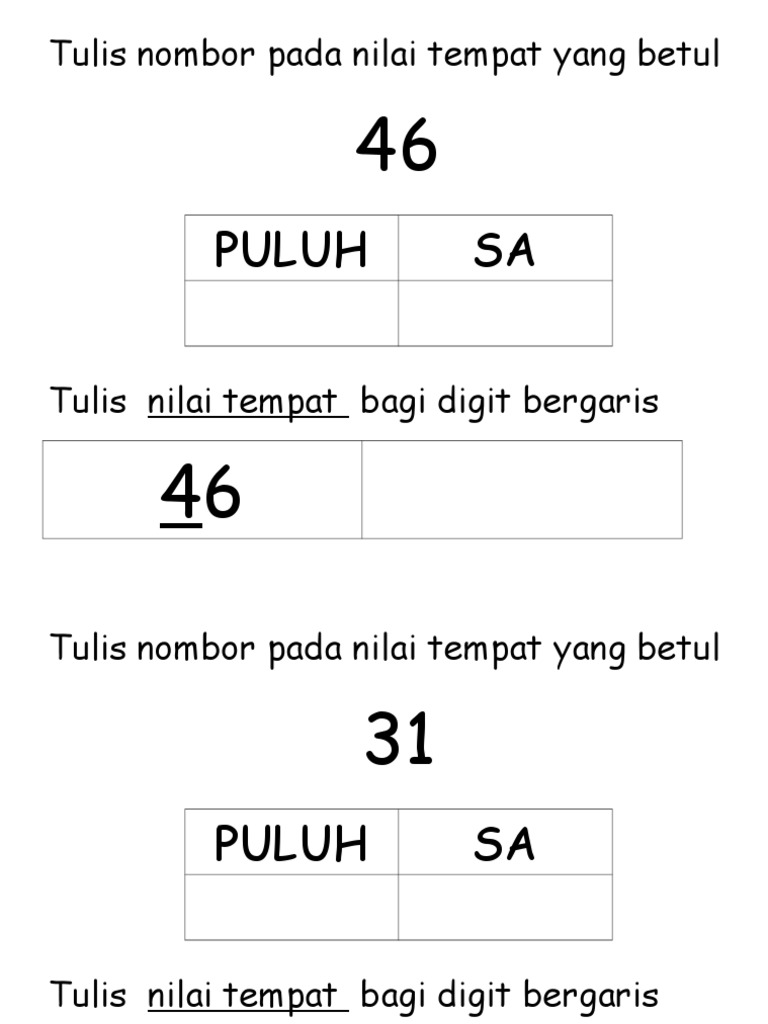 Tulis Nombor Pada Nilai Tempat Yang Betul