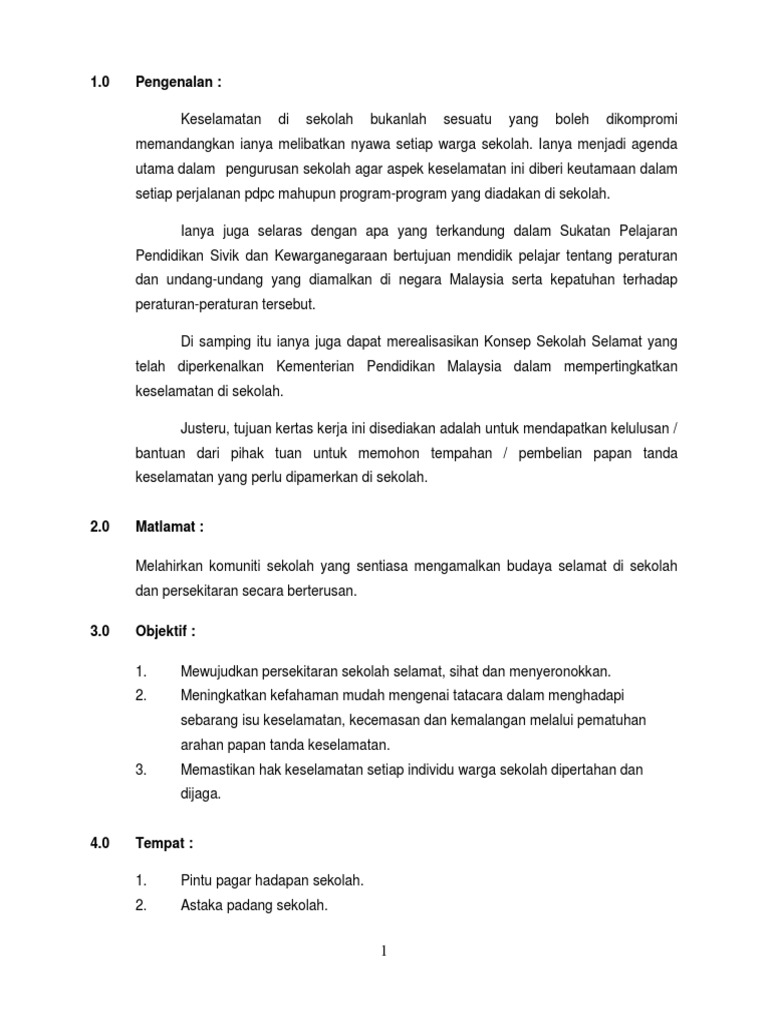 Kertas Kerja Pembelian Papan Tanda Keselamatan Sekolah 2018