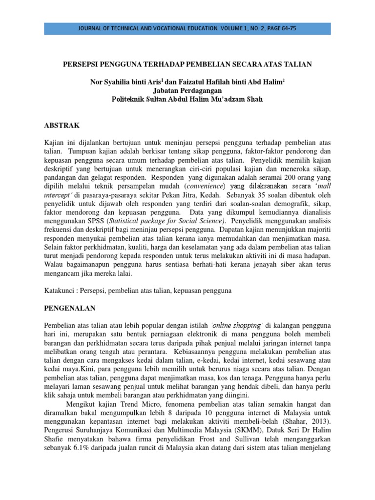 Pdf Amalan Pembelian Secara Atas Talian Dan Faktor6faktor Mempengaruhi Farhan Mat Arisah 1 Shamsul Azahari Zainal Badari 1 Dan Ahmad Hariza Hashim 1 Nurul Natasha Academia Edu