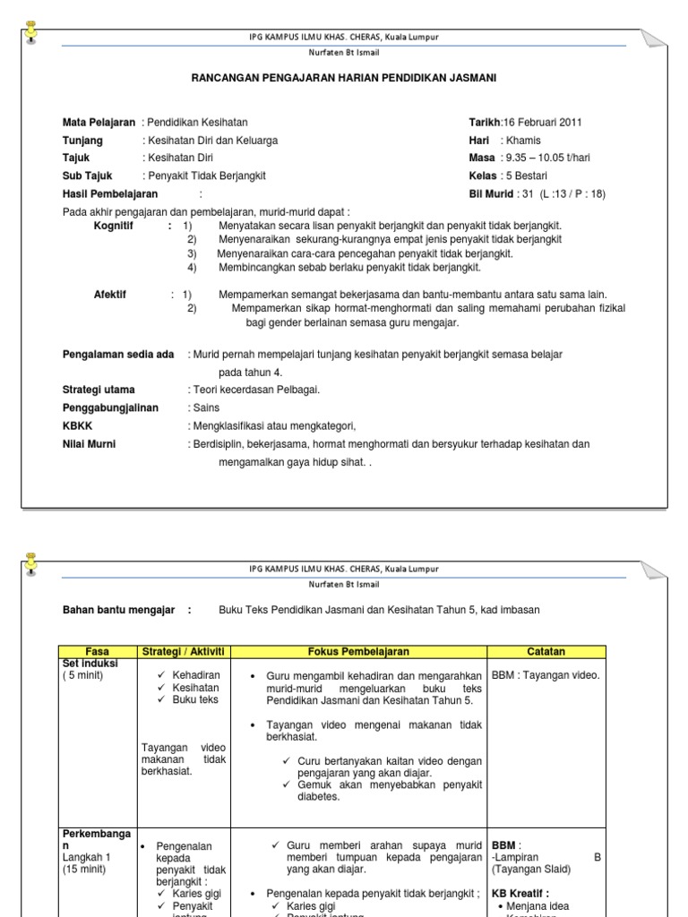 Rancangan Pengajaran Harian Pendidikan Kesihatan