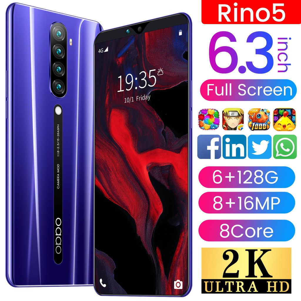 Ready Stock Rino5 Handphone 6gb Ram 128gb Rom Android 9 1 Smartphone 6 3 Inch Handfon Face Recognition Full Screen Phones Fone Murah Shopee Malaysia