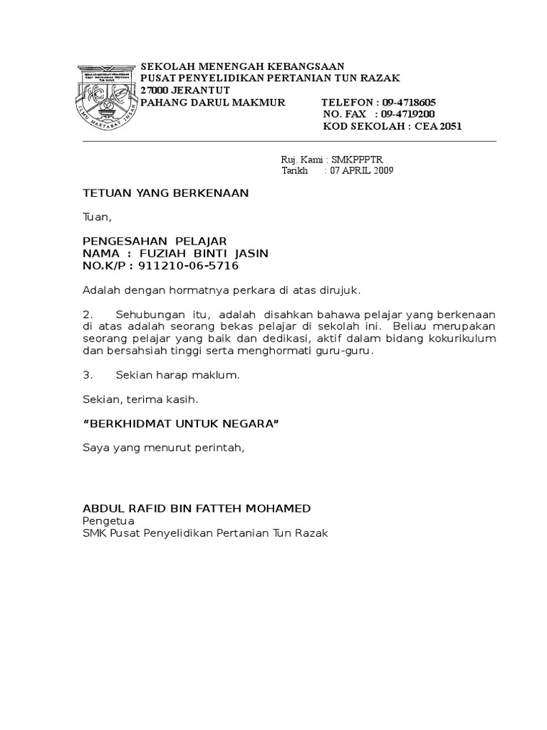 Surat Akuan Pelajar Doc
