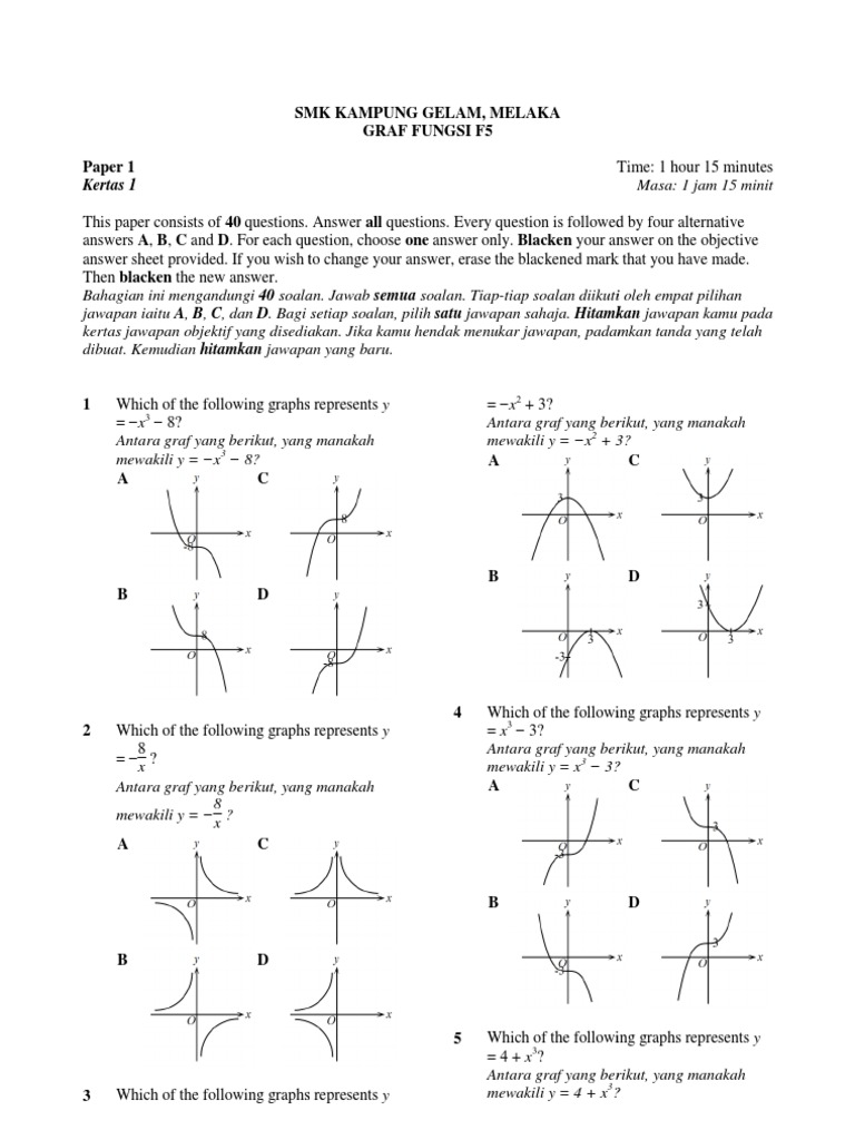 Soalan Graf Fungsi Tingkatan 2 Kecemasan S