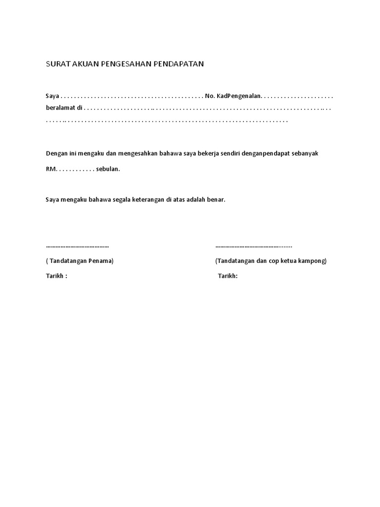 Contoh Surat Pengesahan Pendapatan Pdf