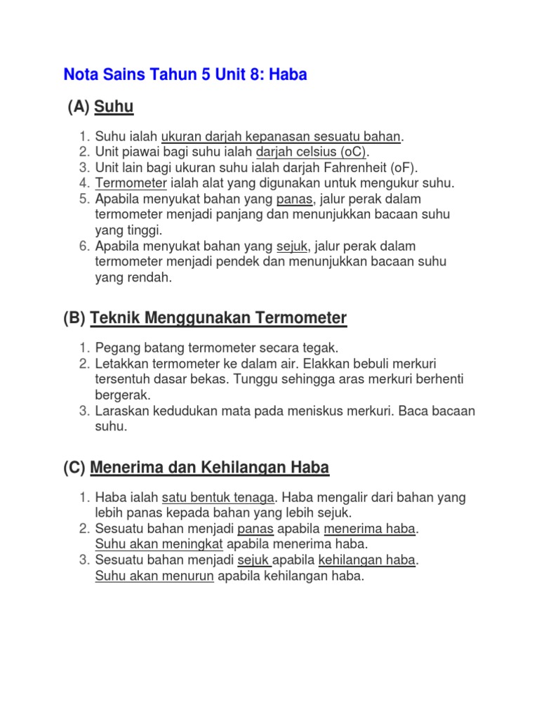 A Suhu Nota Sains Tahun 5 Unit 8 Haba